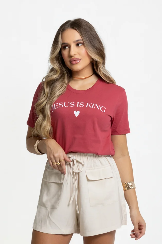 Camiseta Feminina “Jesus Is King” – Fé e Estilo no Dia a Dia