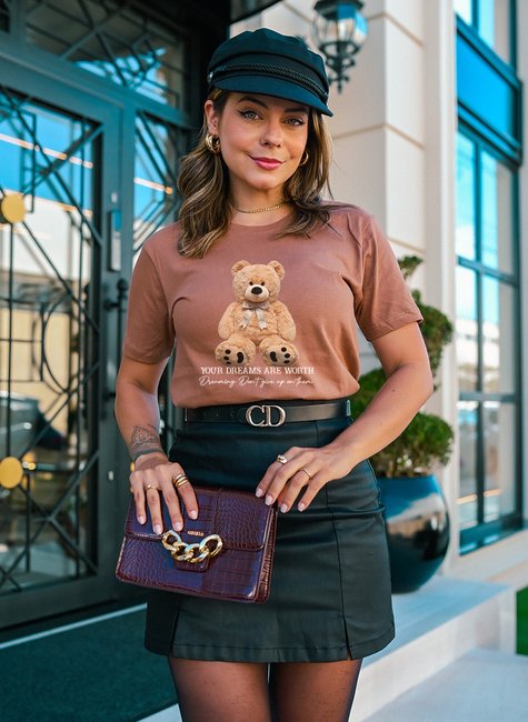 Camiseta Feminina Marrom Claro Urso Your Dreams