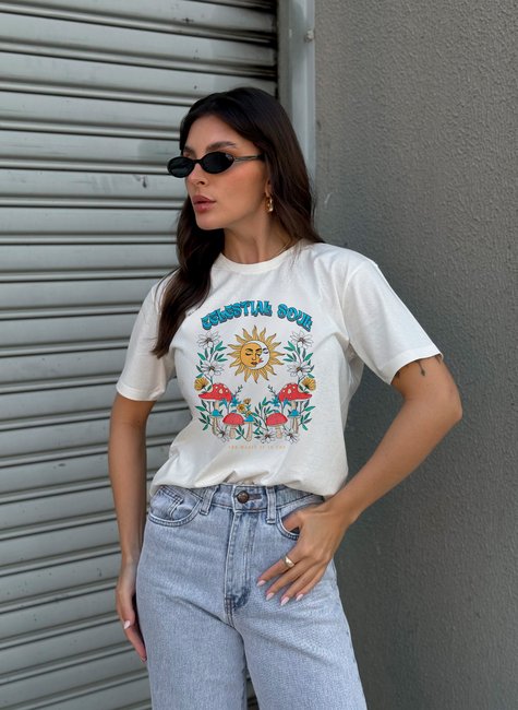 Para quem tem a alma conectada com o universo, a natureza e a própria essência! A camiseta Celestial Soul traz uma estampa vibrante com elementos místicos como o sol, cogumelos e flores, acompanhados da mensagem “The magic is in you” – um lembrete poderoso de que a verdadeira magia está dentro de você.