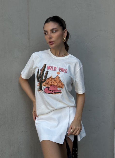 Camiseta Feminina Off White – Wild and Free Cowboy