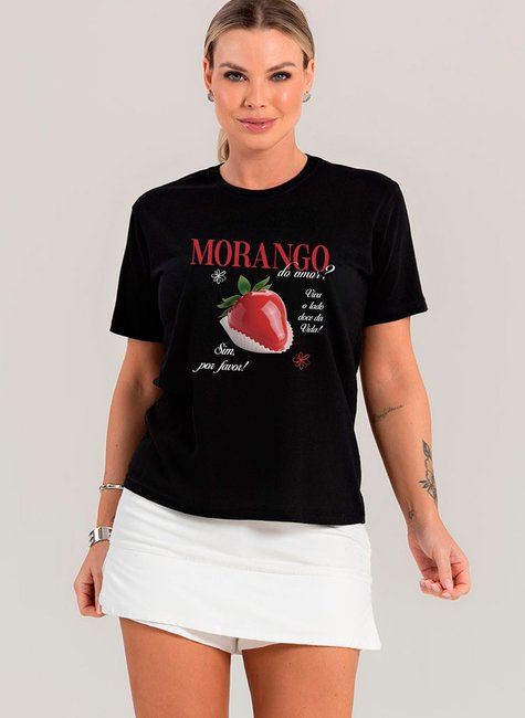 Com uma pegada romântica e bem-humorada, essa camiseta preta traz uma estampa apaixonante com morango em destaque e a frase: “Morango do amor? Sim, por favor! Viva o lado doce da vida!”. Perfeita para quem ama unir conforto com personalidade nos looks do dia a dia.