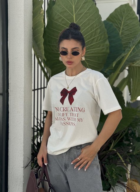 Camiseta Feminina Off White – Laço Vermelho I’m Creating a Life